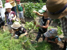 今年も、農家で実際になっているお野菜を見て、食べて、触って…。